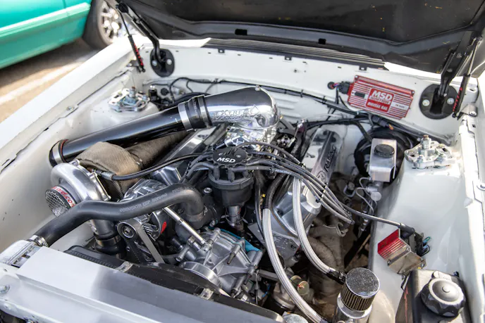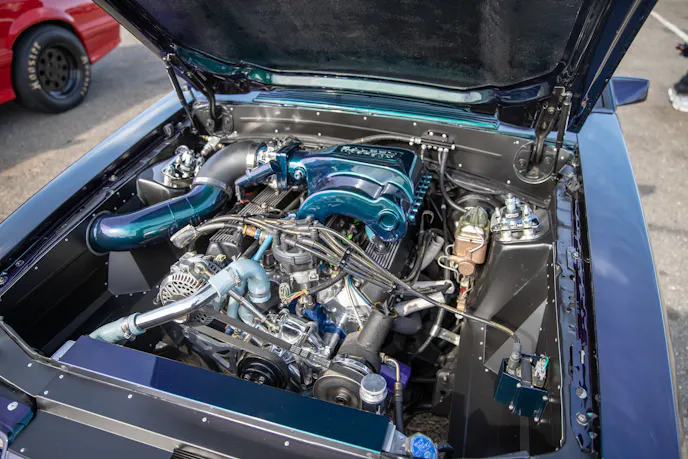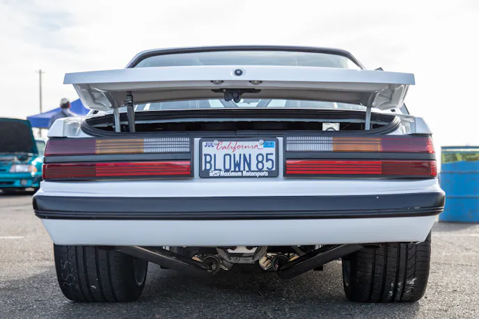 From top to bottom, Moises Barragan’s homebuilt 1985 Mustang LX coupe is jaw-dropping. You might recognize it from the Internet and social media. Under the hood is a Dart-based 306 with TrickFlow 11R 205 heads, and a custom turbo kit making 620 horsepower at the wheels on just 8 psi. It’s backed by a T56 transmission, a mini-tub kit, a mixture of Maximum Motorsports, Team Z, and Viking suspension components, and is augmented by a full custom interior and paint, and it was all built with friends in his backyard.