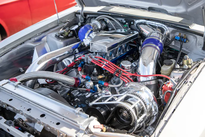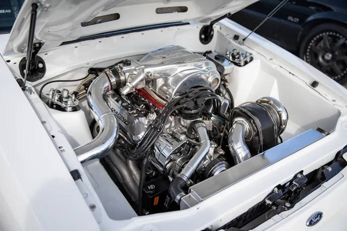It’s not often you see a Terminator Cobra this clean or this mean, but Michael Jassi’s 2003 Cobra optimizes both. It’s knocking on nines at the strip thanks to a Teksid short-block by Jonathan Rivera, with Comp Stage 3 cams, and a 2.9L Whipple Non-Crusher blower. Kooks 1-⅞ inch long-tubes, three-inch mids, and Borla Stingers make up the exhaust, and fuel is handled by a Fore Innovations E85 fuel system with triple pumps and ID1050X injectors. Jassi also chose a Bob Kurgan tune, upgraded T56 transmission, McLeod RXT clutch, solid-rear axle swap with 31 spline axles and a Detroit TruTrac. Finally, the list of modifications is rounded out with a UPR anti-roll bar, coilovers, chromoly K-member, Strange 10 shocks, Team Z springs, and Billet Specialties rims. All that equates to 828 horsepower and 700 lb-ft at 26 psi on a Mustang dyno.