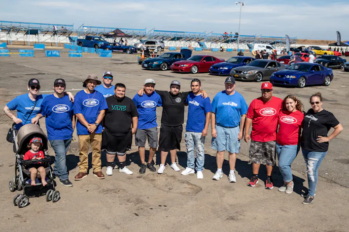 We love all forms of Ford performance, but there’s something special about a naturally aspirated setup that garners great respect, like Jesus Sandoval’s 2014 Mustang GT that’s making 456 horsepower and 408 lb-ft at the wheels. It’s tuned on E85 by AED, and features a Ford Performance Cobra Jet intake manifold and CAI, VMP TwinJet 67mm throttle-body, Kooks long-tubes, X-pipe and mufflers, an MGW shifter and the grey powder-coated Weld RTS wheels. Mani Gill’s 1991 Mustang GT sports custom paint and a 306 with a forged rotating assembly, TrickFlow 170 heads, 1.6 roller rockers and intake manifold, F303 cam, 60-lb injectors, a BBK 75mm throttle body and fuel rails, a Vortech V1 supercharger with an 8-rib setup, and an Anderson Power Pipe.Genuine Ford Fans from all over the state descended upon the racetrack for a day of good times and great memories, like Frank and his crew of Blue Oval diehards.