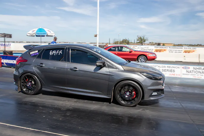 These days, a built Three-Valve is a bit of a rarity, but thankfully killer examples like this Kenne Bell blown Shelby GT on air represent the generation well. This 2015 Mustang GT owned by Maurice Littlejohn ran a best of 11.1 at 126 mph thanks to a ProCharger P1X with a 4-inch pulley, Boundary oil-pump gears, Ford Performance springs, MGW shifter, UPR suspension pieces, GT350 half shafts, 3.31 gears, Race Star bigs and littles, and a Palm Beach Dyno tune.It was great to see Focus and Fiesta STs represented at the show and at the drag strip. This example was traction limited, but had enough trap speed for easy 13s on a sticky tire.