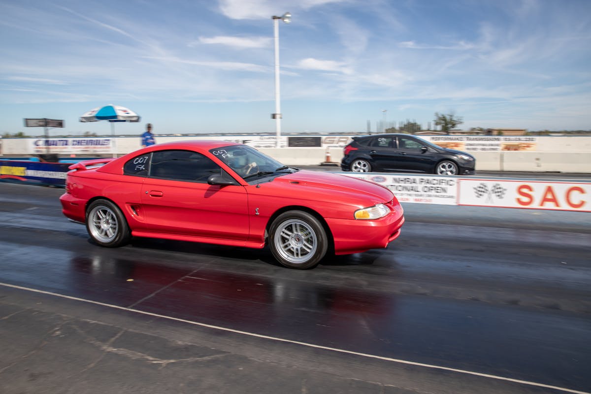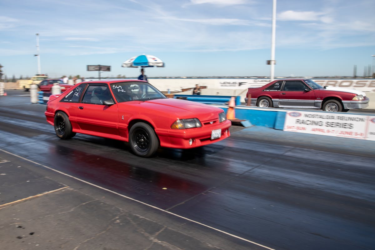 John Giasi’s wicked 1991 Coupe was another killer build from the AED camp that was turning heads thanks to plenty of show and go. This mid-8-second Fox-body makes 1200 horsepower at the wheels thanks to a huge ProCharger blower and a FAST XFI standalone computer orchestrating and charging a small-block Ford that’s backed by a C4 transmission. Spencer Cookson, William Pugach, and Jack Lyster might be smiling now, but every time they lined up at the tree, it was every man for themselves. Honestly, what’s better than a day of friendly rivalry at a car event?Ivan Garcia’s survivor 1993 Teal Mustang Cobra features Maximum Motorsports suspension components and is otherwise stock. When’s the last time you saw a clean Fox-body Cobra?Dominique Burton threw his 2000 Mustang GT Cobra clone around like he was a pro drifter thanks to a Cobra IRS, complete suspension, and brake swap. The Pypes longtubes, X-pipe and straight pipes, Bama tune, BBK fuel rails and cold-air intake and MSD two-step only made the smoke show that much better.Sacramento Raceway proved the perfect backdrop for the event, as the fall weather brought plenty of sun and mild temps; the track was also biting and the crowd came out in droves to see the fast cars put it down.We’re a sucker for clean SN95s, and these days they’re getting harder to find. How’s this for a clean ’vert?The Fox-body excels at many things, and doing donuts is one of them, as John Sebastian Perez’s 1987 Mustang LX coupe demonstrated for the camera. The notchback features a 306 with full bolt-ons, Cobra brakes, Eibach springs, and a Nardo Gray paint job from Oak Valley Autobody in Oakdale.Tayron Young, the founder of Capital City Mustang Club, can be seen individually calling the winners up to accept their awards.We even saw a few LTDs, Crown Vics, and Fairmonts at the show — how’s that for cool?Look closely inside the headlight. Not only does it feature color-changing LEDs, but there’s a howling Coyote in the center of the projector as well — sweet!Michael and Vanessa Bengston took full advantage of the row of food trucks serving up gourmet bites and sweet treats. Nothing better than horsepower and hamburgers!