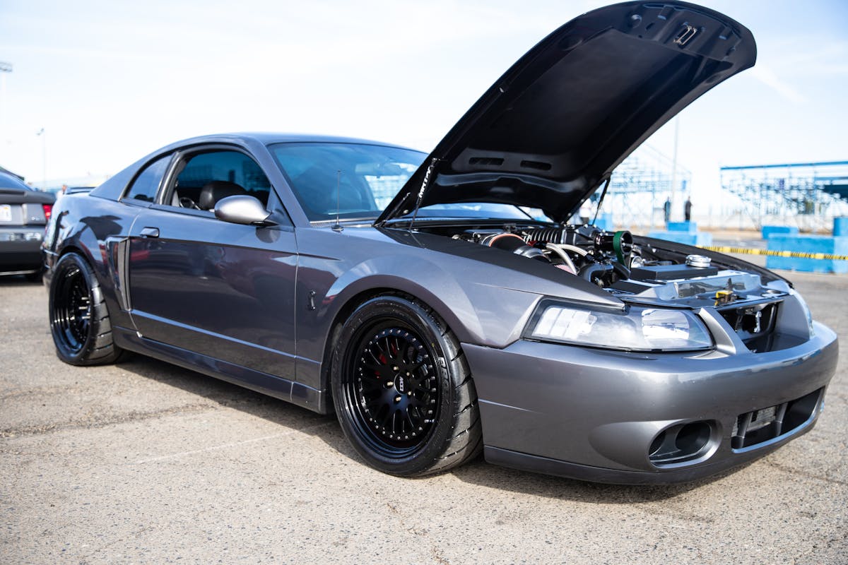 This 1991 Fox-body convertible owned by Ever Millan is a sleeper thanks to a Gen 1 Coyote hiding under the hood. It’s been fortified with a Ford Performance Cobra Jet intake manifold, a Dmark CAI, Ford Performance Twin 65mm throttle body, 4.10 gears, a 6r80 transmission from an F-150, and an AED E85 tune good for 440 horsepower and 428 lb-ft at the wheels. The newly added burnout pit brought plenty of average joes and even some unofficial pros, like Yoni Padilla who tossed his 2006 Mustang GT convertible around like he meant it. The Three-Valve had an AirLift air-ride kit, 20-inch FR500 wheels, carbon hood, and Borla exhaust system.Get used to the view, because should you choose to line up with this Cobra, all you’re going to see is its taillights! Manuel Cervantes’ Terminator Cobra is making four-digit horsepower thanks to a built motor with a Teksid block that’s been filled with Diamond, MMR, and ARP goodies, and then topped with a 3.4L Whipple Crusher supercharger and an E85 fuel system.Final Stage Mobile Detailing was out in full force, ensuring no dirty cars were to be found, as they offered up their knowledge and professional detailing services to showgoers.