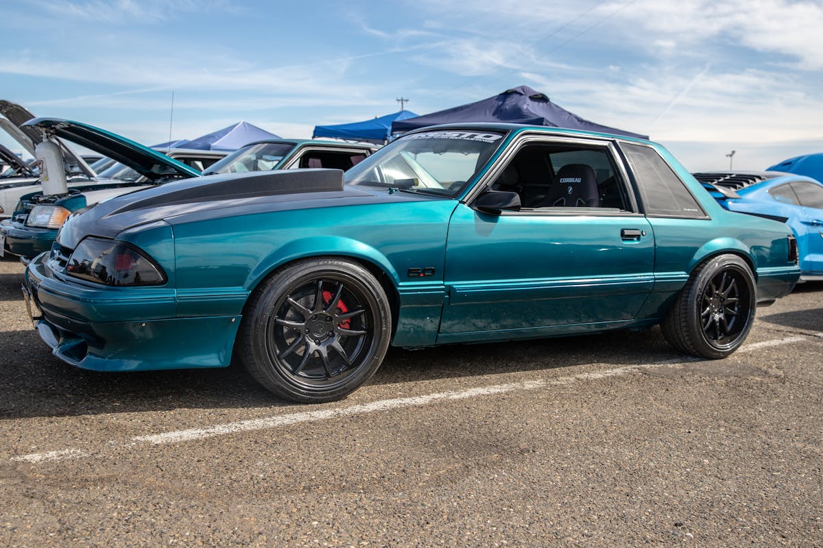 John Giasi’s wicked 1991 Coupe was another killer build from the AED camp that was turning heads thanks to plenty of show and go. This mid-8-second Fox-body makes 1200 horsepower at the wheels thanks to a huge ProCharger blower and a FAST XFI standalone computer orchestrating and charging a small-block Ford that’s backed by a C4 transmission. Spencer Cookson, William Pugach, and Jack Lyster might be smiling now, but every time they lined up at the tree, it was every man for themselves. Honestly, what’s better than a day of friendly rivalry at a car event?Ivan Garcia’s survivor 1993 Teal Mustang Cobra features Maximum Motorsports suspension components and is otherwise stock. When’s the last time you saw a clean Fox-body Cobra?Dominique Burton threw his 2000 Mustang GT Cobra clone around like he was a pro drifter thanks to a Cobra IRS, complete suspension, and brake swap. The Pypes longtubes, X-pipe and straight pipes, Bama tune, BBK fuel rails and cold-air intake and MSD two-step only made the smoke show that much better.Sacramento Raceway proved the perfect backdrop for the event, as the fall weather brought plenty of sun and mild temps; the track was also biting and the crowd came out in droves to see the fast cars put it down.We’re a sucker for clean SN95s, and these days they’re getting harder to find. How’s this for a clean ’vert?The Fox-body excels at many things, and doing donuts is one of them, as John Sebastian Perez’s 1987 Mustang LX coupe demonstrated for the camera. The notchback features a 306 with full bolt-ons, Cobra brakes, Eibach springs, and a Nardo Gray paint job from Oak Valley Autobody in Oakdale.Tayron Young, the founder of Capital City Mustang Club, can be seen individually calling the winners up to accept their awards.We even saw a few LTDs, Crown Vics, and Fairmonts at the show — how’s that for cool?Look closely inside the headlight. Not only does it feature color-changing LEDs, but there’s a howling Coyote in the center of the projector as well — sweet!Michael and Vanessa Bengston took full advantage of the row of food trucks serving up gourmet bites and sweet treats. Nothing better than horsepower and hamburgers!