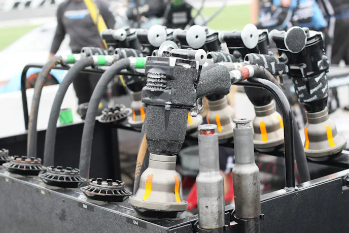 The Stewart-Haas race team was also practicing its impressively fast tire changes on the NASCAR Mustang Dark Horse. If you have never seen it in person, it is a truly athletic display as these men work perfectly in concert with one another to change all four tires in a matter of seconds.
