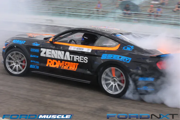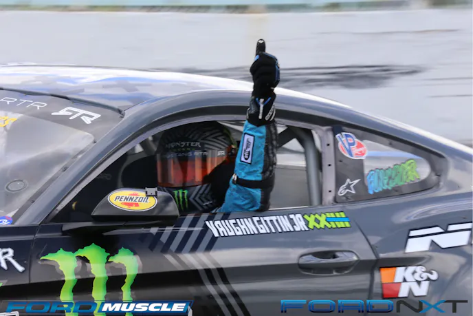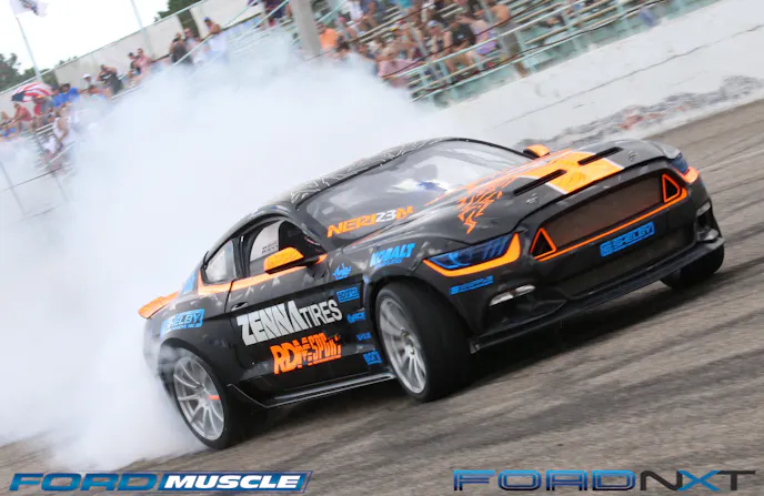 A highlight of the day’s proceedings is a drifting demonstration courtesy of the Professional Fun Haver himself, Vaughn Gittin Jr. He was on hand showing of his swag and RTR Vehicle lineup in between annihilating Nitto tires on the speedway oval. Some lucky show-goers were selected for ride-alongs, which never cease to impress. Two of them were Mustang RTR Spec 2 owners, Matthew Buoye and Caleb Volker. “It’s the ride of your life,” Matthew enthused. “It’s very exciting and you have a smile about two days afterward.”