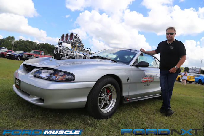 Closing down Wednesday’s official activities is always the SVTPerformance.com Burnout Contest, and this car looked like a real contender. Andrew Kostecki is an Aussie who wants to bring those crazy Down Under burnout competitions to The States via the American Burnout Challenge. His personal tire-shredder is powered by a 671-blown, 400-inch Windsor burning alcohol supplied by a mechanical fuel injection system. It puts out 1,675 horsepower, which should kill lots of tires, but Andrew still drives this SN-95 on the street. Andrew will bring Aussie rules to the MW Burnout Contest when he takes it over in 2019.