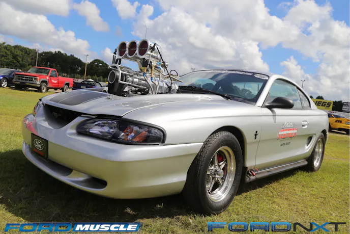 Greeted by the whirr of big-power cars rocking the rollers on a chassis dyno, we rolled into Myrtle Beach Speedway to the sounds of tires squealing around cones and the sights of Mustangs orbiting the oval at speed. This is our kinda place. From the informal gathering at the Meet ’N Greet, Mustang Week revved up into a three-ring automotive circus for its second day on the Grand Strand.