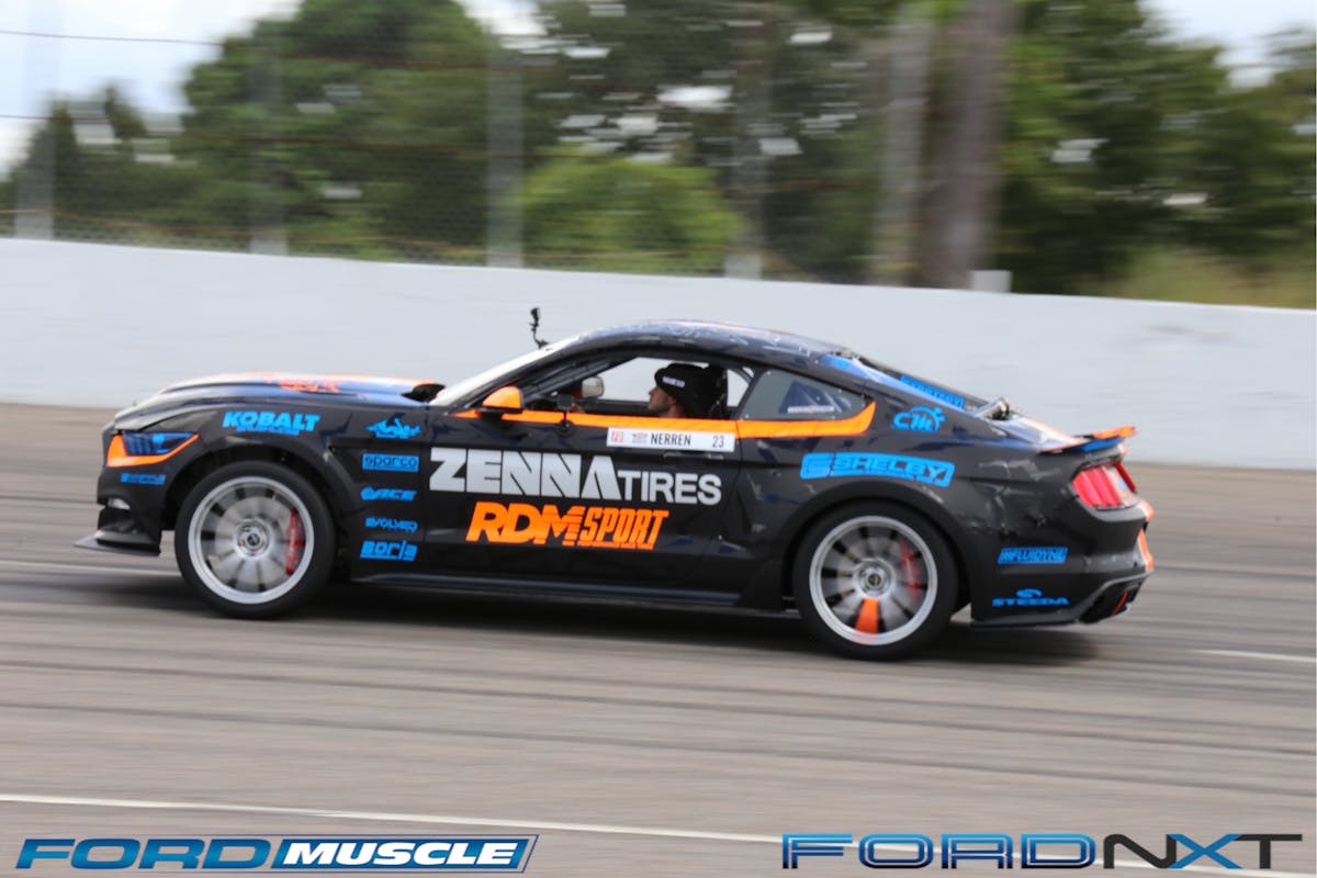 A highlight of the day’s proceedings is a drifting demonstration courtesy of the Professional Fun Haver himself, Vaughn Gittin Jr. He was on hand showing of his swag and RTR Vehicle lineup in between annihilating Nitto tires on the speedway oval. Some lucky show-goers were selected for ride-alongs, which never cease to impress. Two of them were Mustang RTR Spec 2 owners, Matthew Buoye and Caleb Volker. “It’s the ride of your life,” Matthew enthused. “It’s very exciting and you have a smile about two days afterward.”