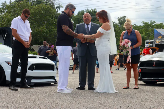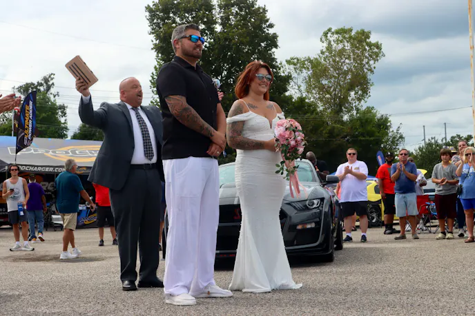 There was a special event within the event at the Official Car Show as Collin and Brianna Cruzan tied the not in front of a huge crowd of onlookers. They did so in front of his 2016 Mustang GT and her 2021 Shelby GT500 “Believe it or not, it was a joke at first,” Collin Cruzan said. “I've always come to Mustang Week, and I made a joke almost a year ago, and we pretty much said, ‘Oh, let’s get married at Mustang Week, and it ended up, as things came closer, we started talking more people, and then it actually happened.”