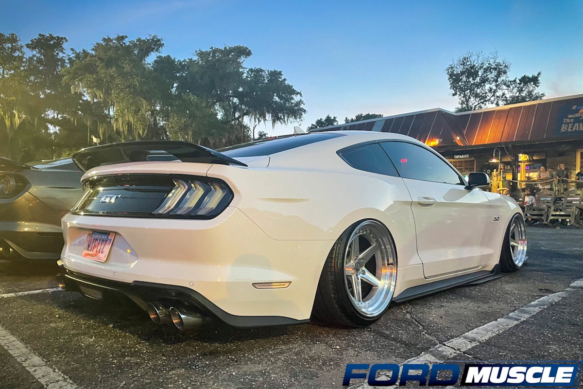 Your Mustang Week event attender and scribe for this article unfortunately flew in a few days too late to make the Steeda party. However my absence would easily go unnoticed, as Steeda’s social media pages boomed with crowd attendance. I did arrive just in time to head to the Beaver Bar meet. I wasn’t quite sure exactly what kind of establishment I would stumble upon with a name like that, but regardless of the venue’s name, the outside was full of feature worthy Mustangs. In the main parking lot a bagged S550 straddled the pavement, a twin turbo S197 lurked from the sidelines, and even a Ford GT was in attendance and so much more.