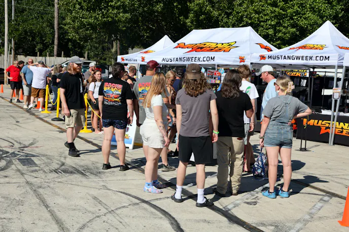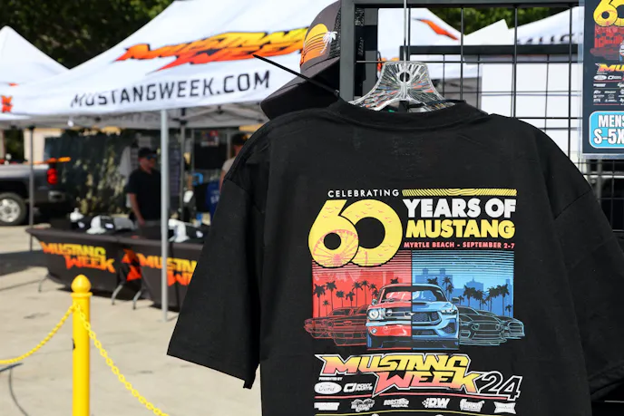 After a huge first day, which brought out more than 1,500 cars to the Kick-off Party, presented by Vibrant, at the Hangout, things kept rolling on Tuesday as fans and participants hit the merch tent to pick up the coveted Mustang Week ’24 swag to signify they were part of the ongoing celebration of the Ford Mustang’s milestone 60th anniversary.
