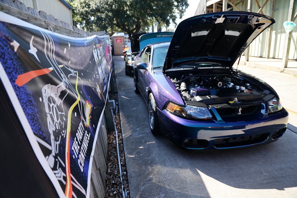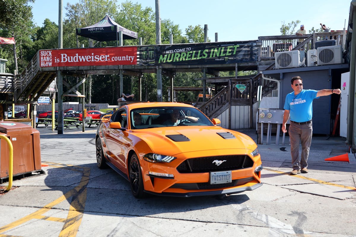 A steady stream of pony cars from all generations filled the parking lot of the infamous Suck Bang Blow biker bar in Murrell’s Inlet, South Carolina. This 40,000-sq-ft facility is known for hosting big events and served as the ideal spot for the All-Mustang Meet-Up presented by Blow-By Racing, which marked the second day of Mustang Week presented by Ford and CJ Pony Parts.