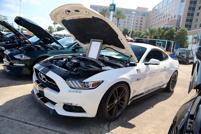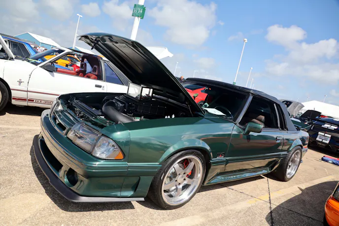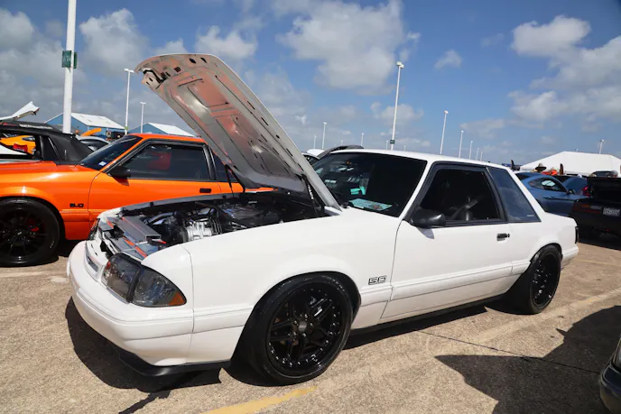 Participants lined up early to enter the show, which was held at the Moody Gardens campus in Galveston, Texas, on April 26, 2025. They streamed into the lot in advance of the opening for spectators, and once those gates opened, there was so much for Ford fans to see and do. Besides checking out all the amazing cars, a DJ was pumping tunes from the Modern Driveline Main Stage, kids frolicked in bounce houses, and food trucks sizzled as their creations prepared. The sounds of horsepower filled the air as VMP Performance continued its quest to find the most powerful All-Motor and Power Adder pony cars on the property in the Dyno Challenge.