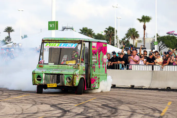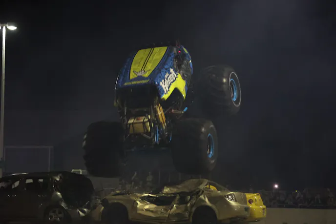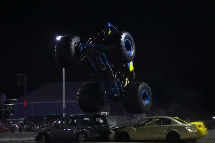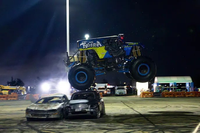 After a short break to add a few unfortunate Bowtie-wearing vehicles to the ring, a Ford Bronco Monster truck, known as Big Kahuna, entered the chat. Demonstrating its crushing power, the several-thousand-horsepower monster truck climbed cars and crushed them easily. Then the Big Kahuna turned them into a ramp for high-flying fun during the Monster Truck Crush. Of course, no showing of a monster truck is complete without donuts, so driver and Texas local, Shane England, showcased his ability to wheel his truck to several perfect spin cycles for the crowd.