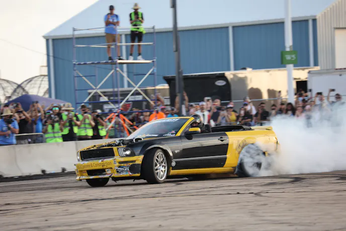 For the inaugural Mustang Week Texas presented by Ford and LMR hosted at Moody Gardens, the show introduced a late-night event titled Mustang Week Mayhem presented by Auto Addict, an all-out display of horsepower and tire-roasting activities immediately following the Official Mustang Week Texas Car Show.