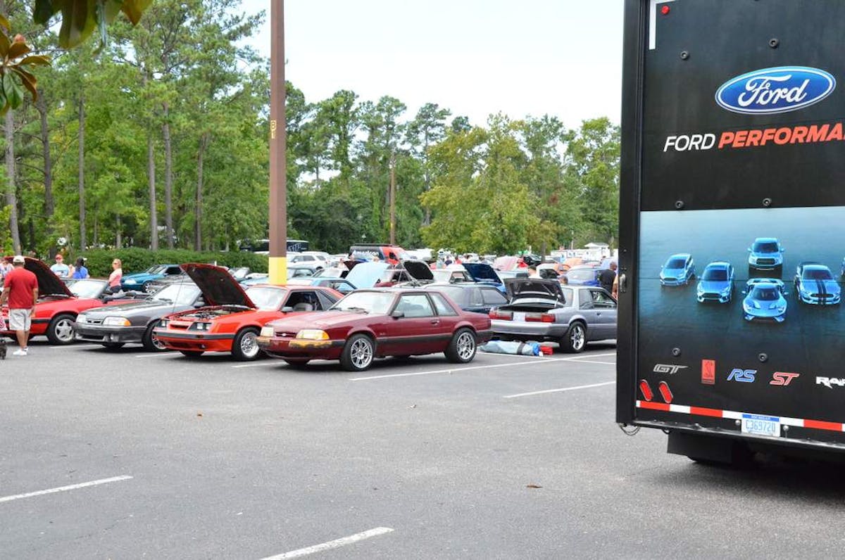 As is tradition, the Fox Mustangs in the annual Foxbody Cruise were some of the first onto the show field. Coming off a half-hour cruise featuring over 100 Foxes, the group were parked right up front by the impressive Ford Performance display.