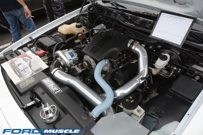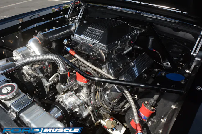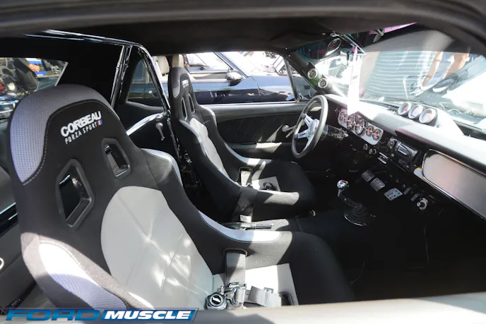 Performance-oriented restomods such as this black coupe are the rage in the classic Mustang ranks at Fab Fords. The rules seem to be any sort of modern suspension, brakes, wheels tires and interior mods are good, while engine mods gain points for at least hinting at period correctness, hence the new specification carb-in-a-box Paxton centrifugal seen here. In that way the classic ponies and Foxes share the same zeitgeist plus many of the same mechanicals.