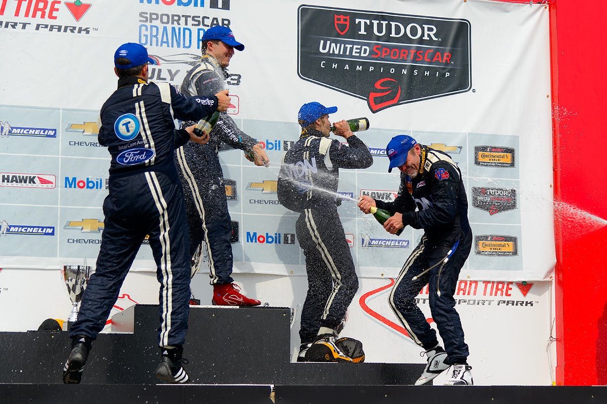 It was the first win of the season for Andy Lally, Matt Bell, and the No. 9 Stevenson Motorsports Camaro Z/28.R (however their teammates Robin Liddell and Andrew Davis have two wins to their credit). Ian James and Billy Johnson rebounded from their disastrous start at Watkins Glen by finishing second at Canadian Tire Motorsports Park in the No. 158 Multimatic Motorsports Mustang BOSS 302R. Their teammates Jade Buford and Scott Maxwell finished third.