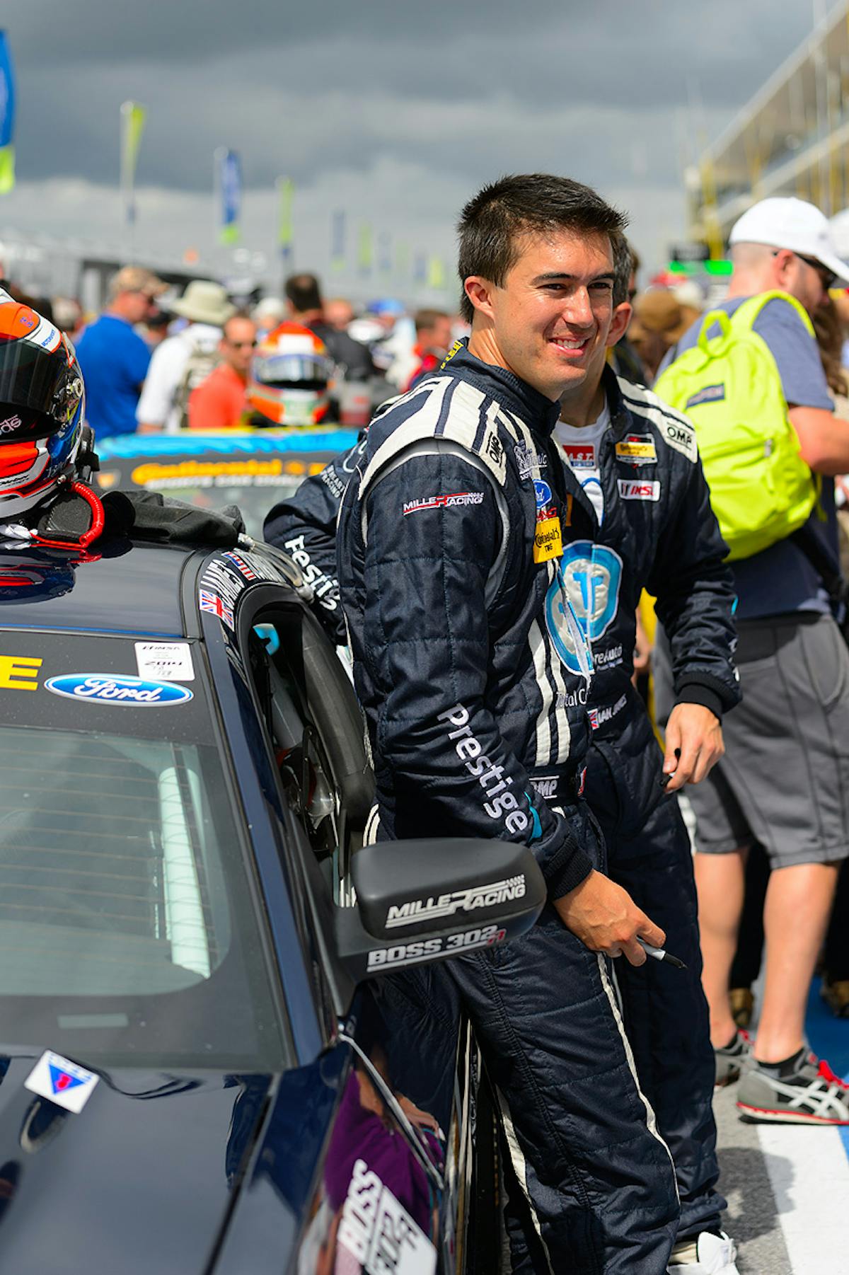On lap 23, Johnson drove the No. 158 Multimatic Motorsports Mustang BOSS 302 to the pits for fuel, tires, and to hand over driving duties to Ian James. After emerging from the car, Johnson commented, “My stint was crazy. It was dry on the front stretch, dry on the back of the track, and wet in the middle. It wasn’t wet enough for rain tires, so I just had to deal with it.”