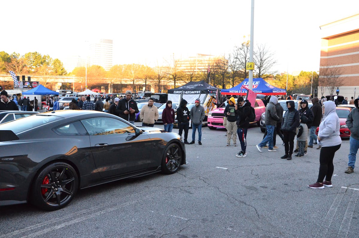 Just as the sun broke into the downtown Atlanta sky, this brand-new GT500 made its way though all the Lamborghinis, Ferraris, and Porsches to park quietly down toward the end of one of the rows. It did not take long for a crowd to quickly gather around the new Mustang, still wearing its paper tag, fresh from the dealership. Once a few dozen people had surrounded the car, the owner jumped back in and fired up the 5.2-liter Ford V8 engine for the crowd to hear. After a few quick revs, he hopped out and quickly disappeared into the crowd, letting the car be the star of the show. Believe us, the Shelby had no issues speaking for itself!