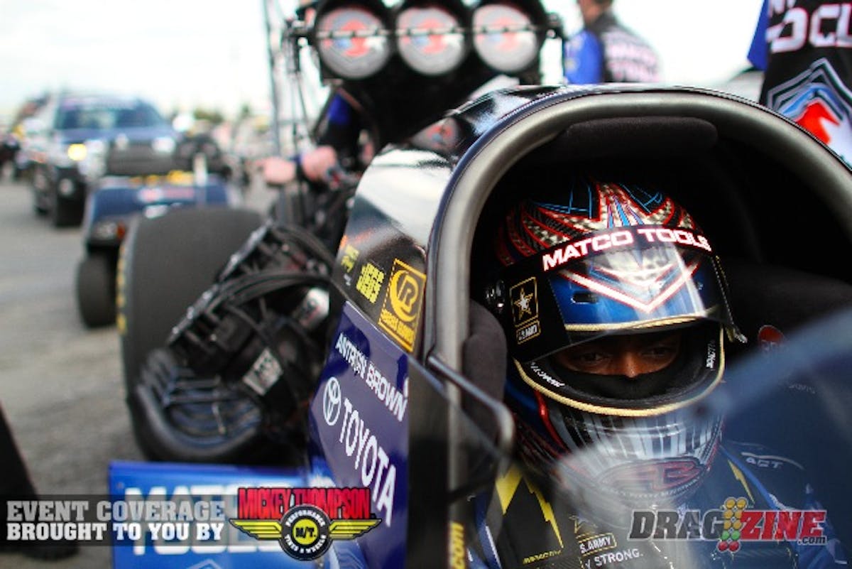 Antron defeated Morgan Lucas, teammate Tony Schumacher, and Doug Kalitta on his way to the money round.