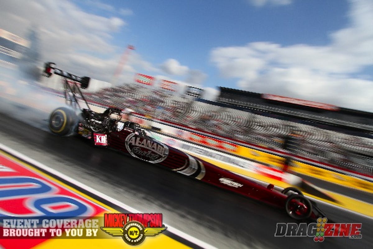 “They weren’t great runs today, but we’ll still get data,” Dixon said. “I am really surprised that a 3.90 stuck. I really thought some of the cars, especially (teammate) Del’s (Worsham), would actually knock that off. I think we were really fortunate. If you get a 10 degree cooler track (tomorrow) you’ll see some quicker E.T.s. For me, my job is the same whether (the track temperature) is 60 or 160 (degrees). We’ll go out there and try hard and know that the Al-Anabi team will give me a great race horse.”