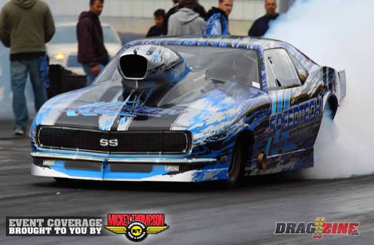 Balooshi outran veteran drag racer Rickie Smith in the final round at The Strip at Las Vegas Motor Speedway. In a battle between two nitrous-injected ’68 Camaros, Balooshi posted a 5.983 at 237.13 in his Speedtech entry to power away from Smith, whose car trailed with a 6.012 at 237.71.