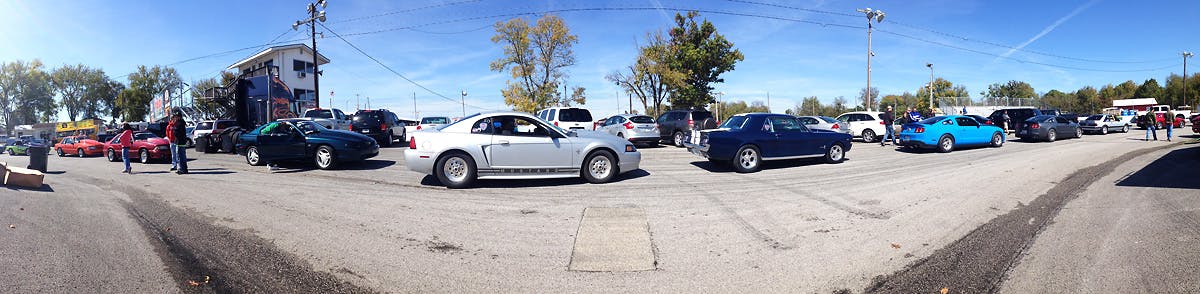 A panoramic view of part of the True Street lineup that wrapped clear around the 3/8-mile oval track.Current Factory Stock qualifying leader Matt Amrine made the second quickest lap of the round this afternoon, carding a 10.97 that was bettered only by Carlos Sobrino and his 10.93 effort.