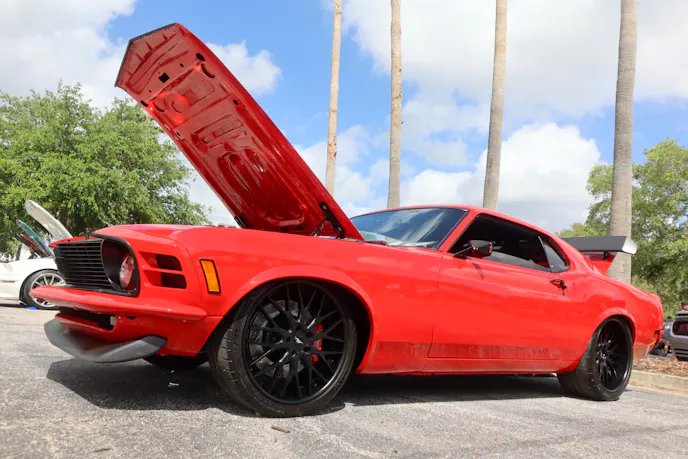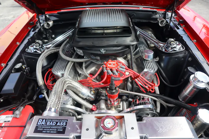 It’s a bold move when you proclaim your ride as “Bad Ass,” but in the instance of this red Mach 1, it is pretty accurate. The lightly resto-modded classic walks the walk with an of-the-era look on the outside. Under the hood, the small-block wears plenty of performance upgrades and shiny bits that give it a more modern flair. If you are going to an MCA show expecting to see all stockers and concours restorations, this Mach 1 — and many of the other rides we saw — dispels that myth.