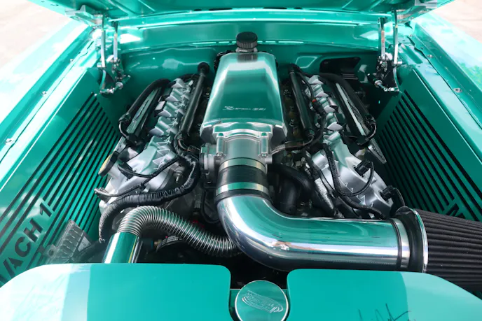 This Grabber Green 1970 Mustang is owned by Steve and Dale Garai. Under its hood is a Gen 2 Coyote showcased in a sanitary engine compartment. With a front suspension that eschews shock towers, its inner fenders were replaced with vented billet panels that frame the 5.0-liter engine, which emphasizes the modern powerplant. The engine is mated to a TREMEC T-56 six-speed manual transmission, so this restomod is sure to put a grin on the driver’s face.