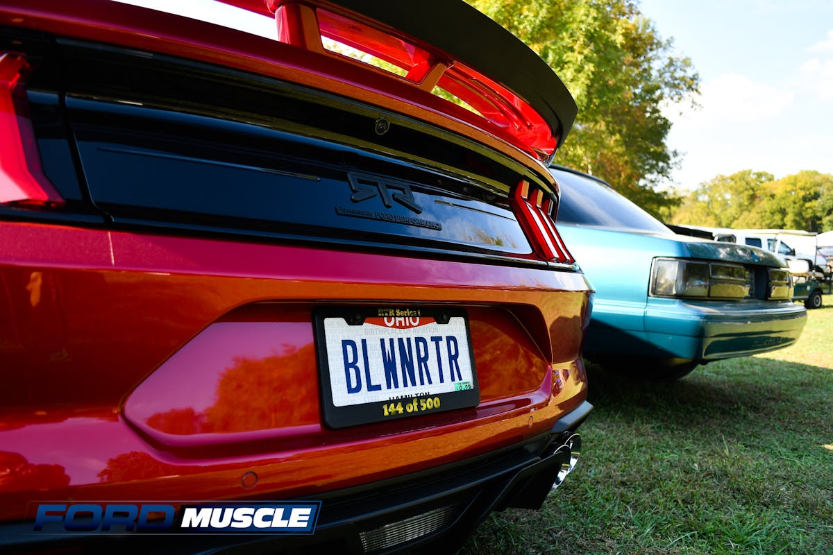 At Ford Muscle we love vanity plates. I mean, who doesn’t? The ingenuity behind fitting a phrase or word into 7-8 letters can be astounding. There are even some that require looking in your rear-view mirror to understand! We frequently catch ourself snapping photos in traffic just the share the humor with others. While we were at 2021 Holley Intergalactic Ford Fest there was no shortage of personalized plates on hand — these ranged from word play, model designation flex, or intimidation.
