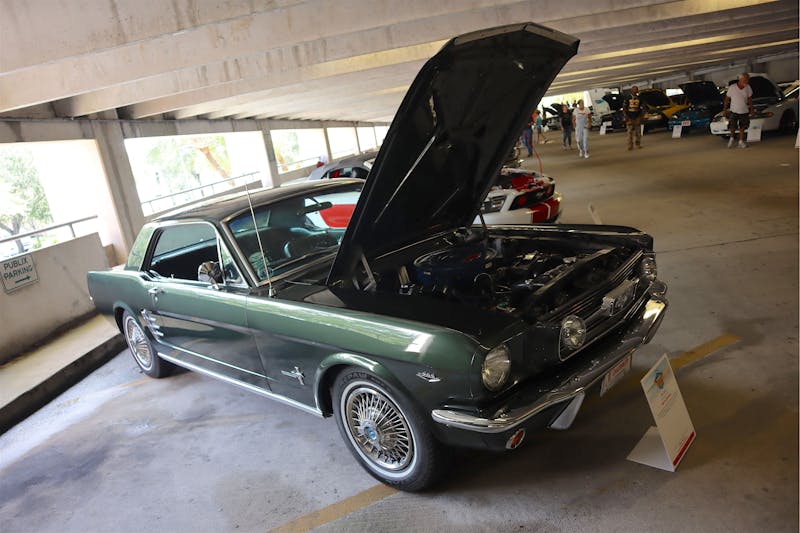 Standing alone in the concours section, this numbers-matching Mach 1 was a beauty. One of just 1,962 built with Medium Blue Metallic paint, it still has the original 351 Cleveland under the hood. Even cooler, owner Dana Cheatham still holds the original build sheets and invoice.