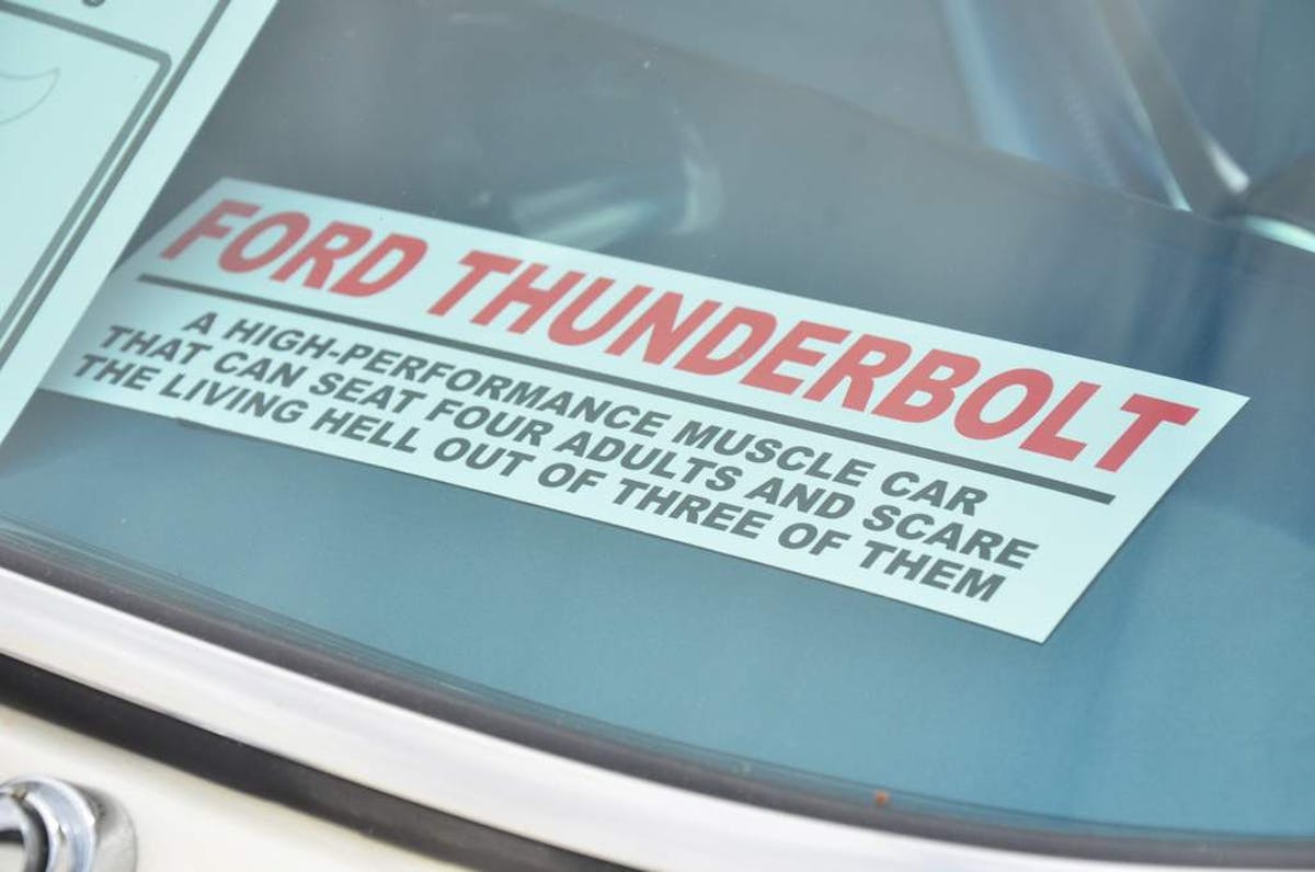 The car was modified in the ’70s by legendary factory Ford racer Hubert Platt. Although it has since been returned to original form, the Platt treatment included a Weiand intake manifold with dual center squirt Holley carbs; Hooker headers; a Lakewood scatter shield; an aluminum flywheel and a 4.56 Traction-Lok rearend.