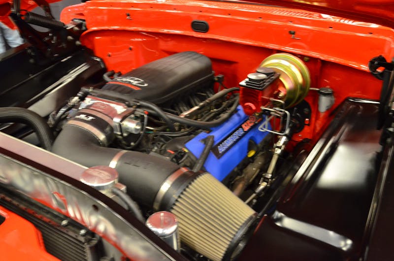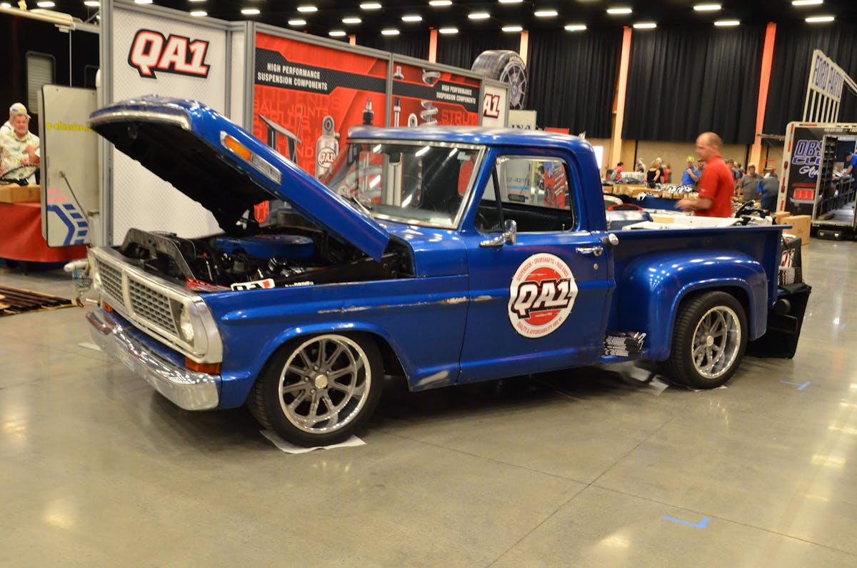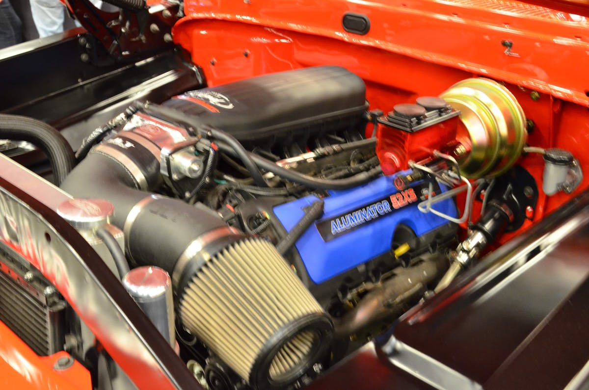 Yeah, Boss 9 as in Boss 429. Need we really say more? This Boss 429 shoved in the F100 of Lee and Lana Smith of Broadway, Virginia is one nasty looking pickup truck. From the legendary Boss 429 up front to a massive tire shoved under the rear tubs out back, this truck screams nasty.