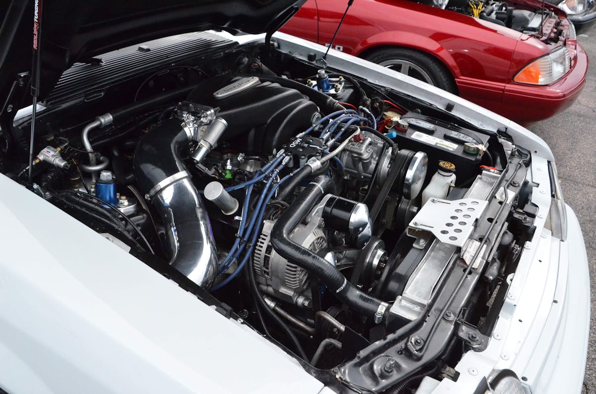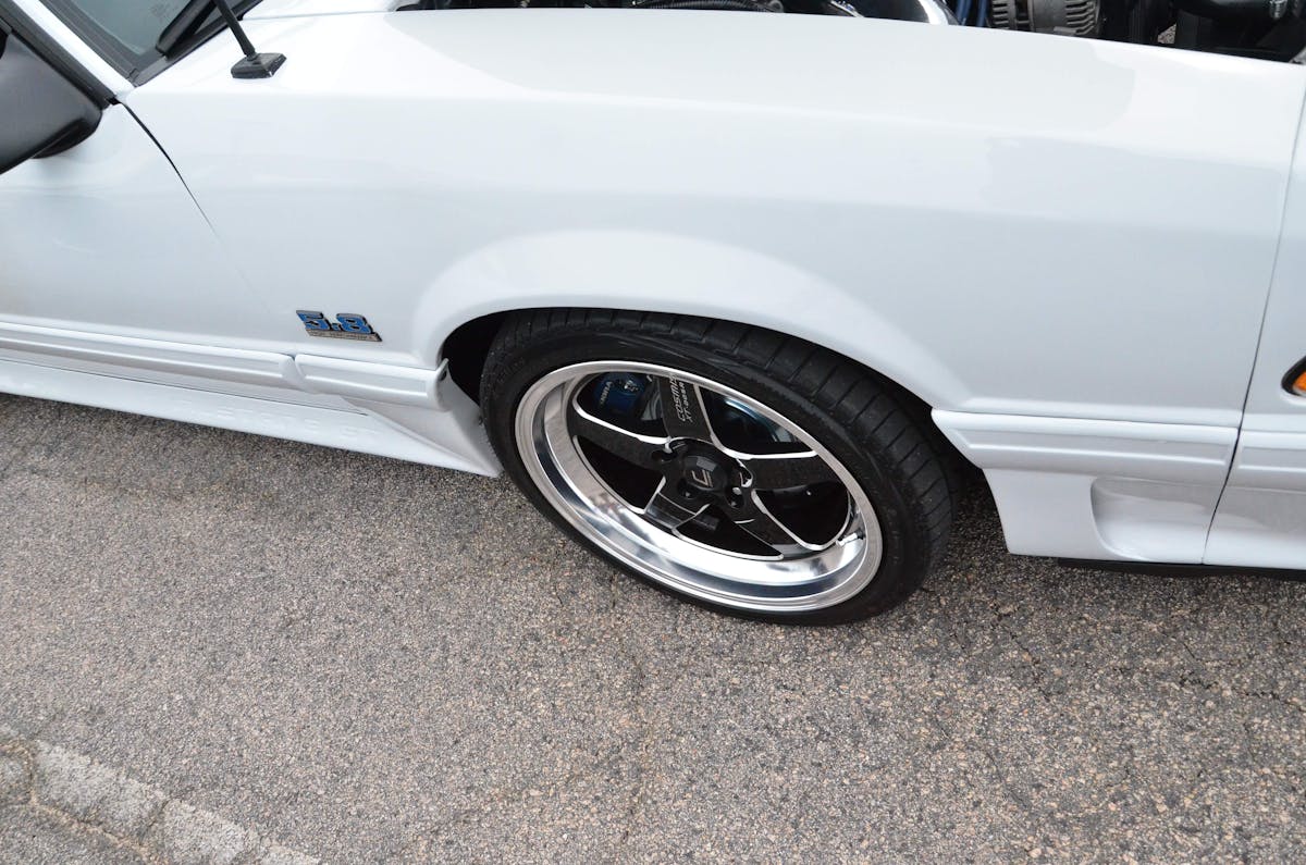 Matt’s car is a perfect mix of original and modern. The car started out as a 54,000-mile V6 coupe with the original paint. Over the course of eight weeks, Matt upgraded the drivetrain from one end to the other, with the heart being an original 1993 Cobra engine and transmission. The interior features a set of SVO seats with some period correct covers. Finishing off the look is a set of 17-inch Crown Vic police wheels. Matt did a great job thinking slightly outside the box to create a Fox-body people will certainly be talking about for a long time to come!