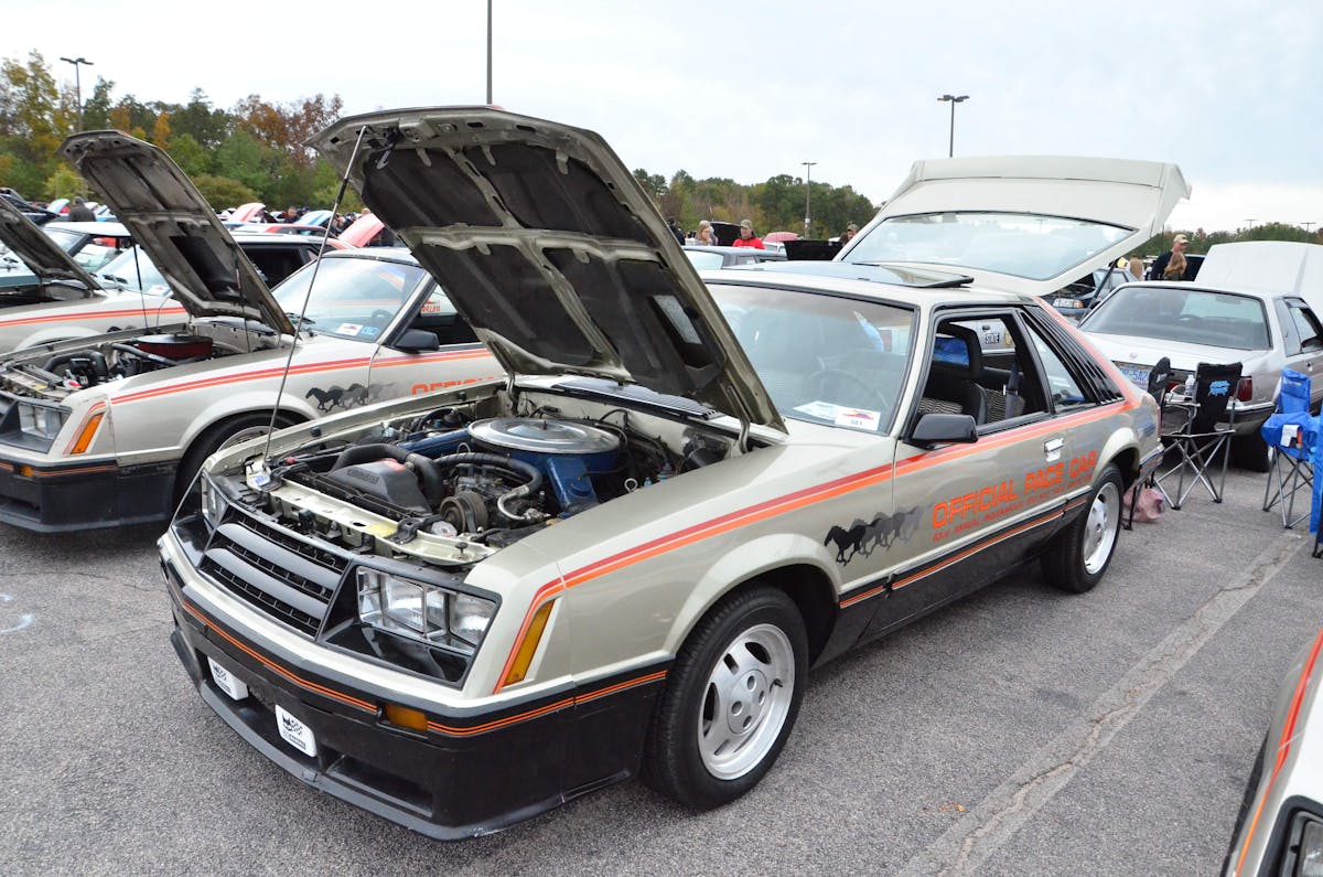 Before we show you number one, we had to throw in four Fox-body Mustangs that almost made the list! From left to right, top to bottom: Jason Smith's immaculate low-mile(less than 3,000) 1993 yellow convertible; a gorgeous Coyote-swapped GT with a set of perfectly matched gold wheels; Brian Drumms' all-business 1979 Indy Pace Car (see more on this car and its killer story by following @drummstoolbox on Instagram); and finally, Mustang Week Staff Member Mike Clay's gorgeous blue 1981 Cobra.