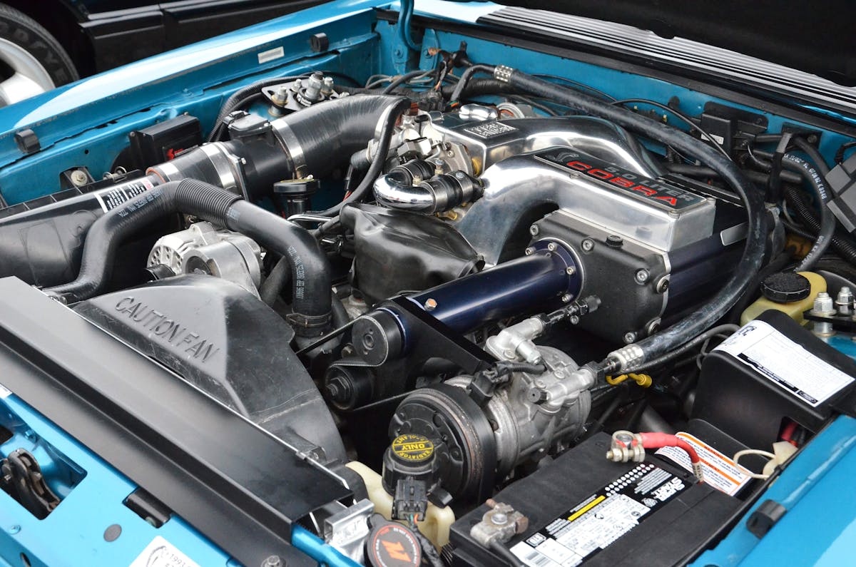 While the Vortech-fed 302 Cobra engine is sweet, it's the interior in this car that really sets it apart from the rest. The TMI Opal Grey R1000 sport upholstery mixes the stock look with a modern touch. Tons of other small touches complete it to make one of the sharpest Fox-body interiors we have seen in a good while.