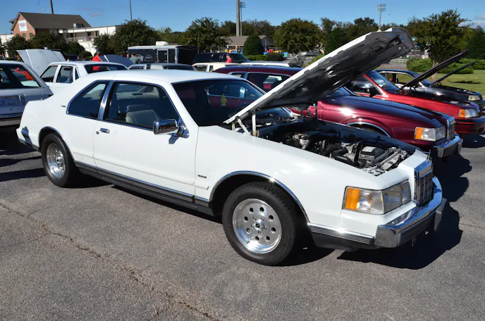 One of the cool features about Foxtoberfest is the fact that it is open not only to Fox Mustangs but other cars that share the Fox Chassis including this cool late 80’s Lincoln! This car also features several other Mustang friendly parts and pieces like a classic set of drag lights, Marchal Fog Lights, and a Hurst shifter. Yeah, that is right, its a manual transmission car! Super cool!