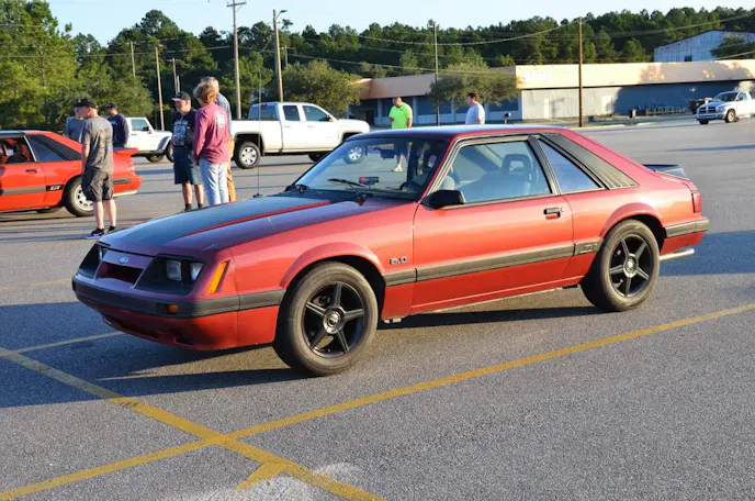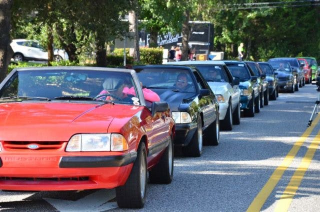 If you are a regular on Saturday at Mustang Week at some point or another you have probably seen an impressive line of Fox Mustangs cruising down Hwy 31 or maybe blocking traffic on Hwy 17 rolling into the cruise-in over 100 cars deep.