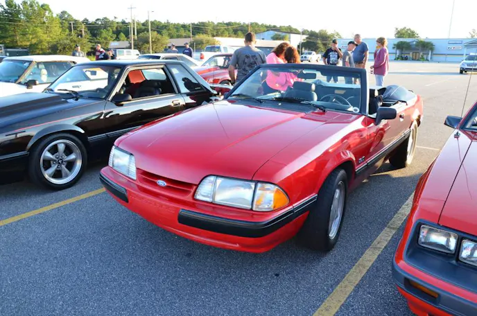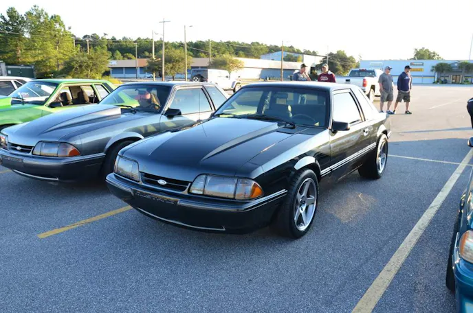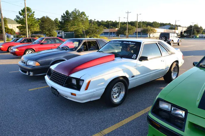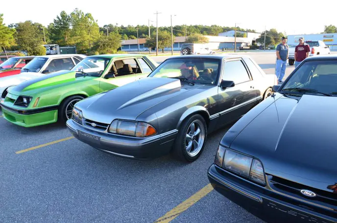 If you are a regular on Saturday at Mustang Week at some point or another you have probably seen an impressive line of Fox Mustangs cruising down Hwy 31 or maybe blocking traffic on Hwy 17 rolling into the cruise-in over 100 cars deep.