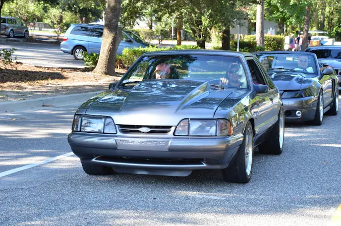 If you are a regular on Saturday at Mustang Week at some point or another you have probably seen an impressive line of Fox Mustangs cruising down Hwy 31 or maybe blocking traffic on Hwy 17 rolling into the cruise-in over 100 cars deep.