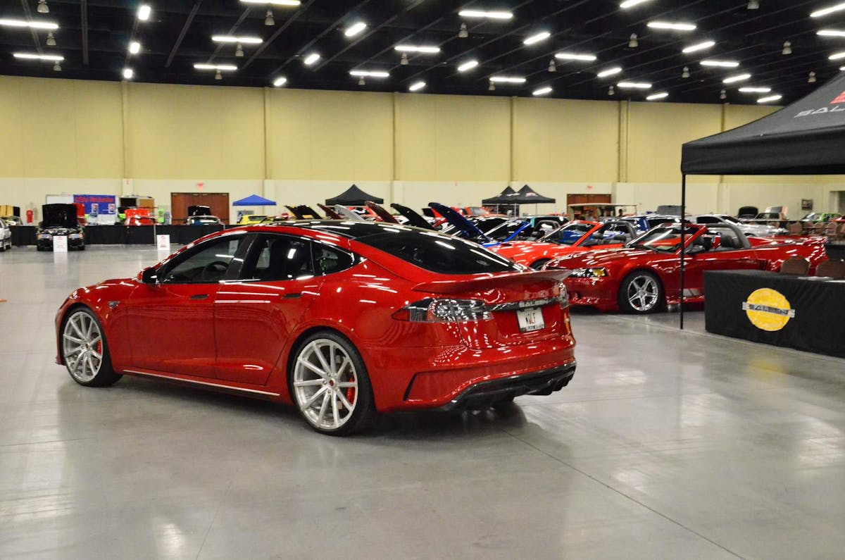 In front of the stage, The Saleen Club Of America once again set up an impressive mix of Saleen ranging from 1984 all the way to modern day. From early production cars, one of colors, and the ultra cool Saleen pickup trucks, there was a little of everything. Including an rare Saleen Tesla on center display driven to the show by one of Steve Saleen’s personal friends.