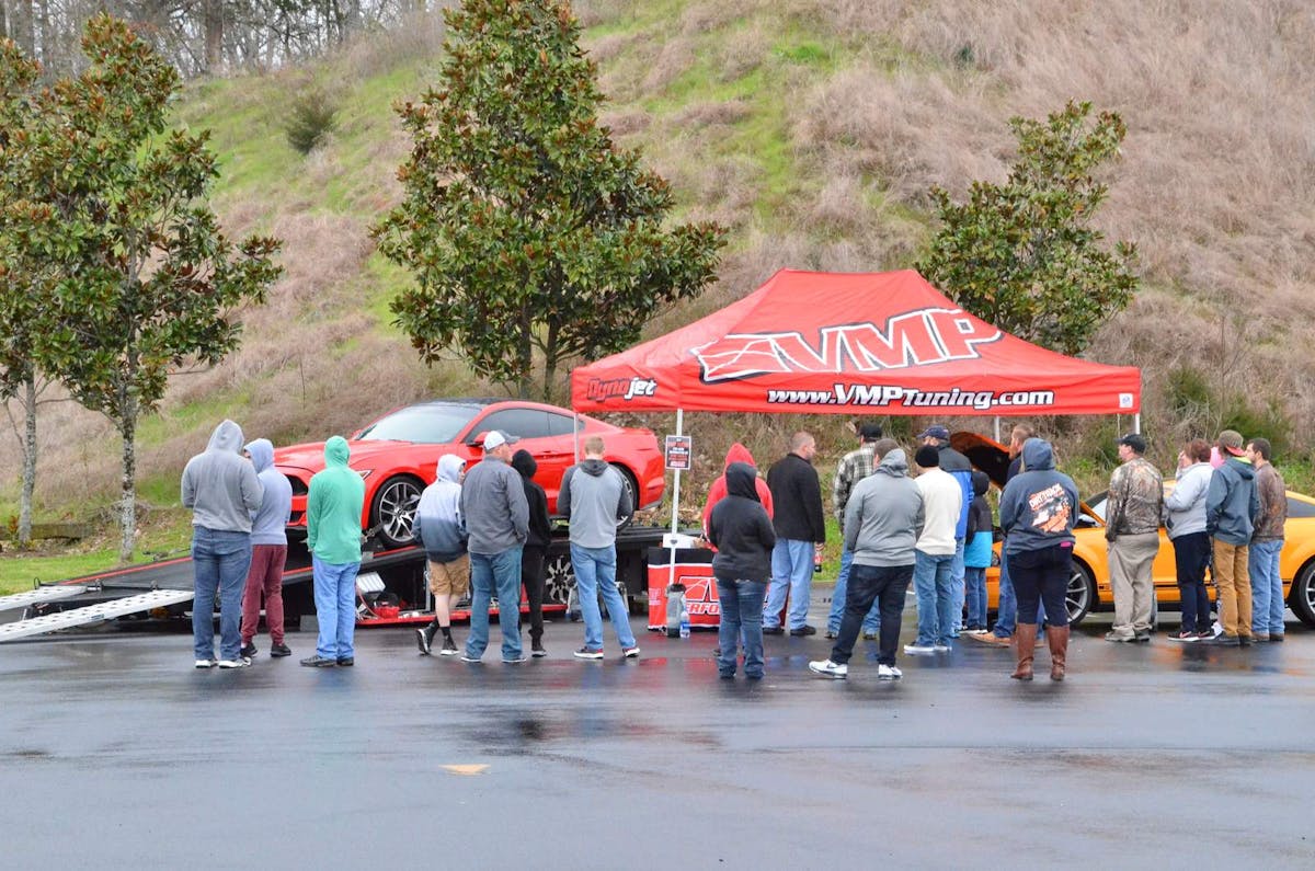 Thursday brought the party to Quaker Steak & Lube in Sevierville, Tennessee, for the Shine Run Party sponsored by Clearshine. The event is held “down under” behind and under the bridge in the back lot of Quaker Steak & Lube. With the Pigeon River and the snow-covered Great Smokey Mountains in the background, it made for a picture-perfect end to two days of excitement-filled driving. Shine run participants turned in their cards in hopes to hear their names called for a top prize during awards on Saturday. The lot soon filled up and overflowed into the grassy fields with over 250 cars coming out for the event, a sign of big things to come Friday and Saturday.