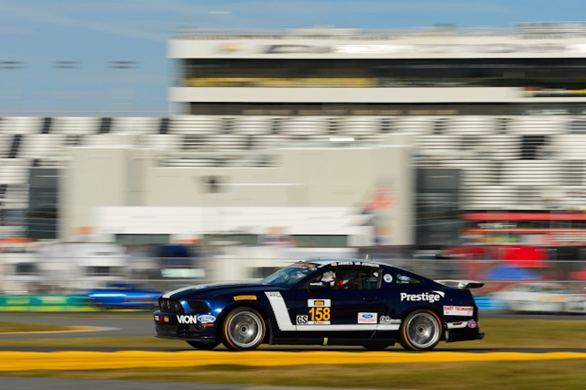 Top Left: Ian James and Billy Johnson co-drove the #158 Multimatic Motorsports Mustang BOSS 302R at Daytona. Johnson, the driver with the most Mustang victories, became a free agent after ROUSH Performance moved to SCCA World Challenge for 2014. Top Right: Kurt Rezzetano qualified the #32 Mustang BOSS 302R seventh at Daytona. Bottom Left: The #78 Racers Edge Motorsports Mustang started the race 16th with Lucas Bize behind the wheel. Bottom Right: The Racers Edge Motorsports Mustang BOSS 302R exits “The Bus Stop Chicane” along the back straight at Daytona. The series of turns is used to slow sports cars down at the iconic track.