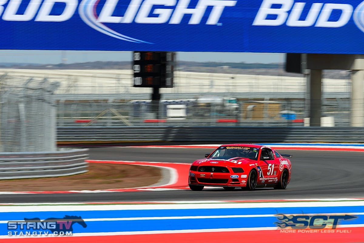 Though the venue was new, the Grand-Am Continental Tire Sports Car Challenge’s first visit to the Circuit of the Americas on March 2nd 2013 ended with three former championship teams on the podium—2011 season champ Paul Dalla Lana and Bill Auberlen on the top step. The highest finishing Mustang was 8th, driven by Roger Miller and Ian James.