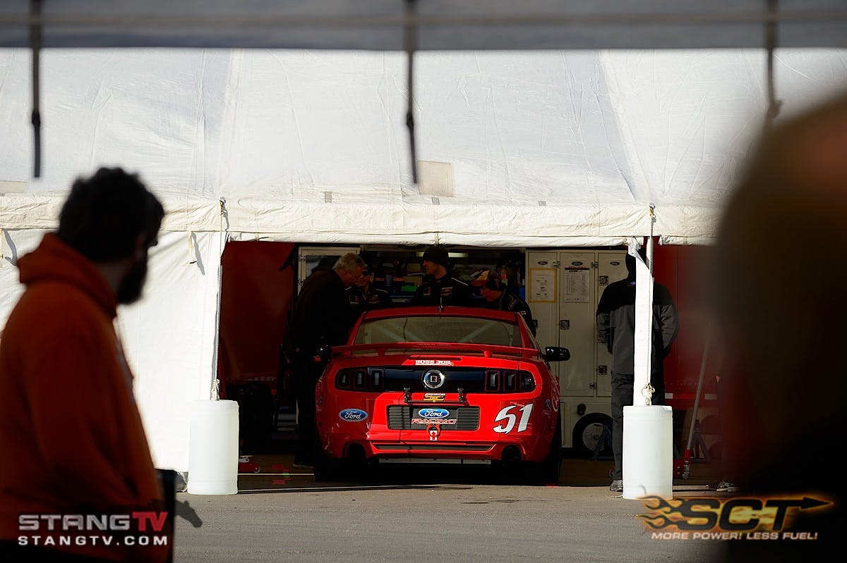 The Roush Performance crew makes last-minute preparations to the #51 Roush Performance Mustang Boss 302R before the race. Drivers Shelby Blackstock and Joey Atterbury started 10th and finished 14th.