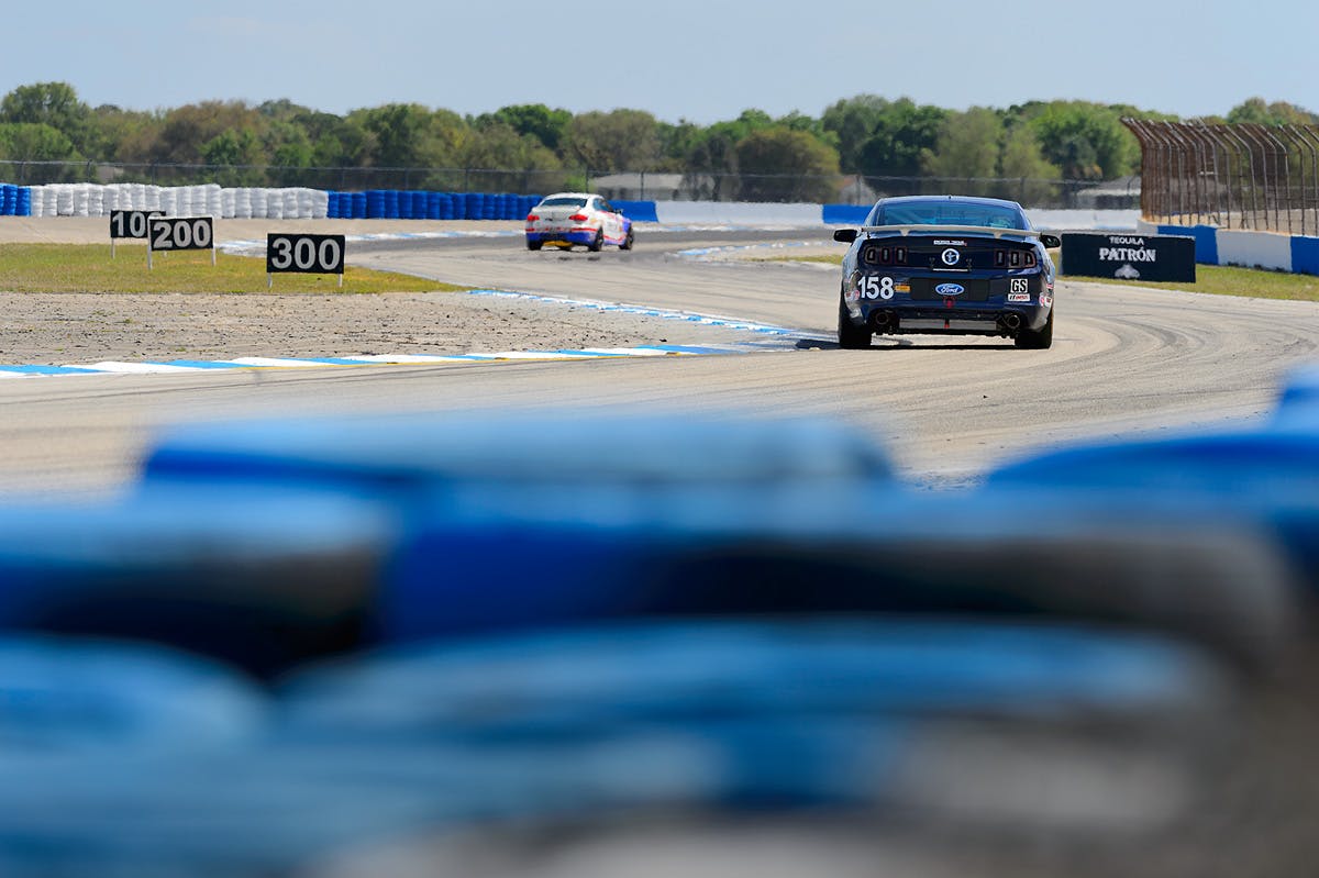 In qualifying, the Fall-Line BMW M3 of Trent Hindman picked up where he left off after finishing second at Daytona: at the top of the charts. The youngster was the only driver to dip into the 2:15’s with a blistering 2:15.947 qualifying lap. However, things were crowded in the battle for grid supremacy; the top nine positions were covered by nearly one second! Eric Curran drove his Camaro Z/28.R to the outside pole position ahead of Billy Johnson who qualified the #158 Mustang BOSS 302R third on the grid.
