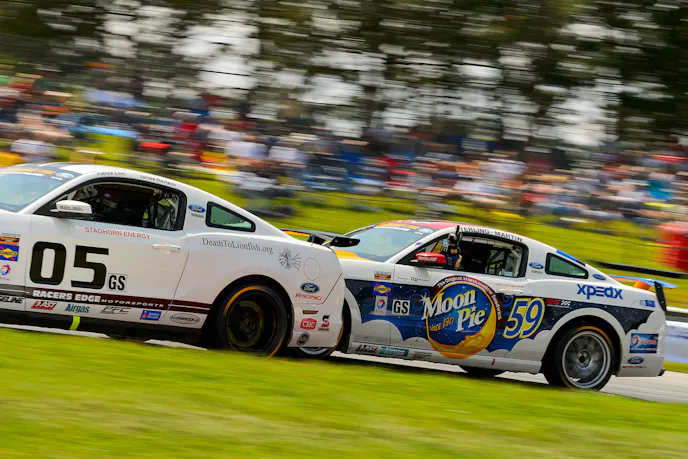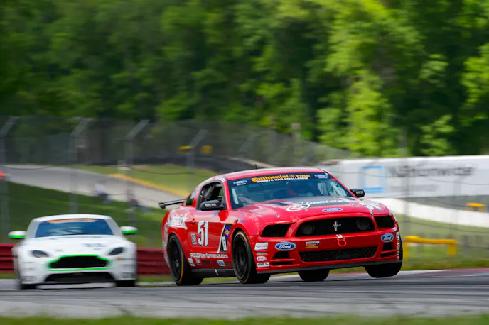 With the race back to green, Buford’s Aston led the field uninterrupted until pitting on lap 33 when Patrick Linn’s #05 Racer’s Edge Motorsports Mustang Boss 302R was stopped on the track. Joey Atterbury (#51 ROUSH Performance Mustang Boss 302R), running second at the time, also pitted. David Epringham (#15 Aston Martin) inherited the lead, followed by Mike McGovern (#02 Mustang) and Bryan Sellers (#46 BMW).