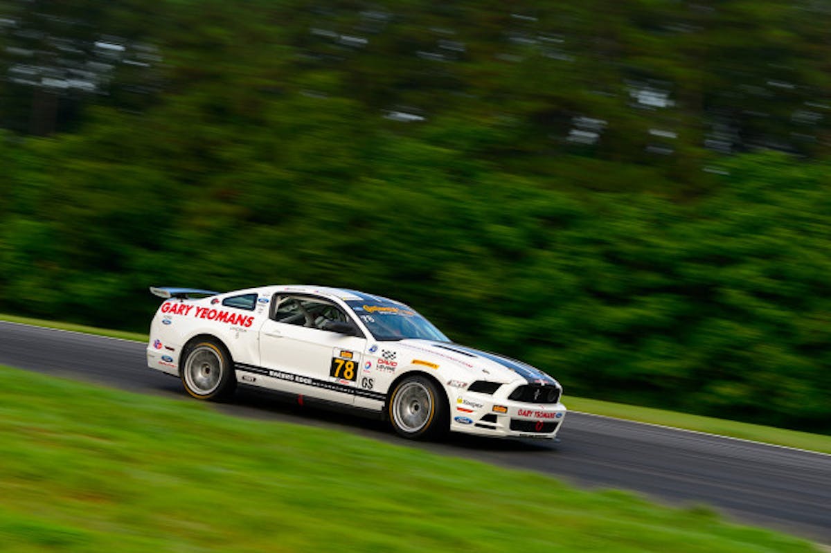 The No.78 Racers Edge Motorsports Mustang BOSS 302R rounds turn 5A at VIR. The car finished the race a disappointing 19th place after starting 3rd on the grid.