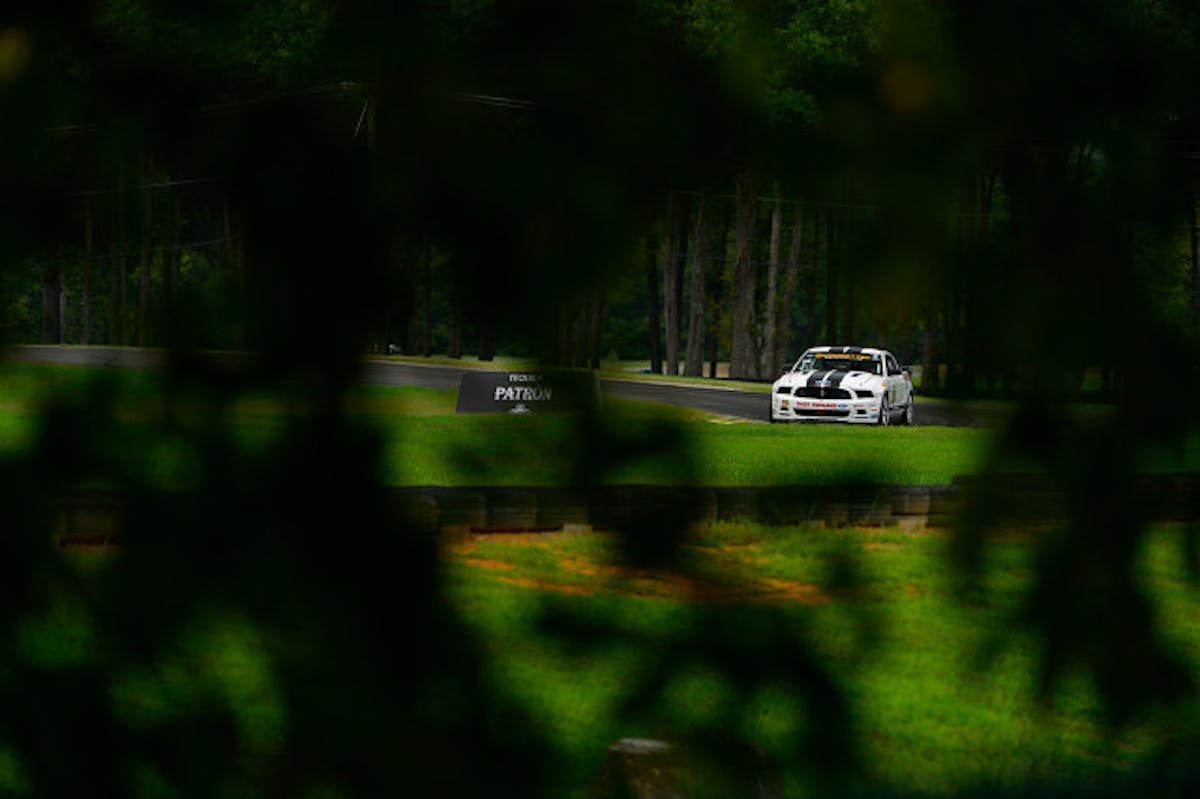Billy Johnson powers out of turn six at VIR driving the No. 158 Mustang BOSS 302R he shared with Ian James.